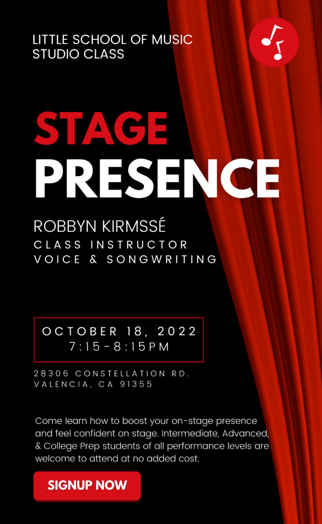 Studio Class Presented by Little School of Music Featuring: Robbyn Kirmssé, Voice & Songwriting Instructor Date & Time: December 6th