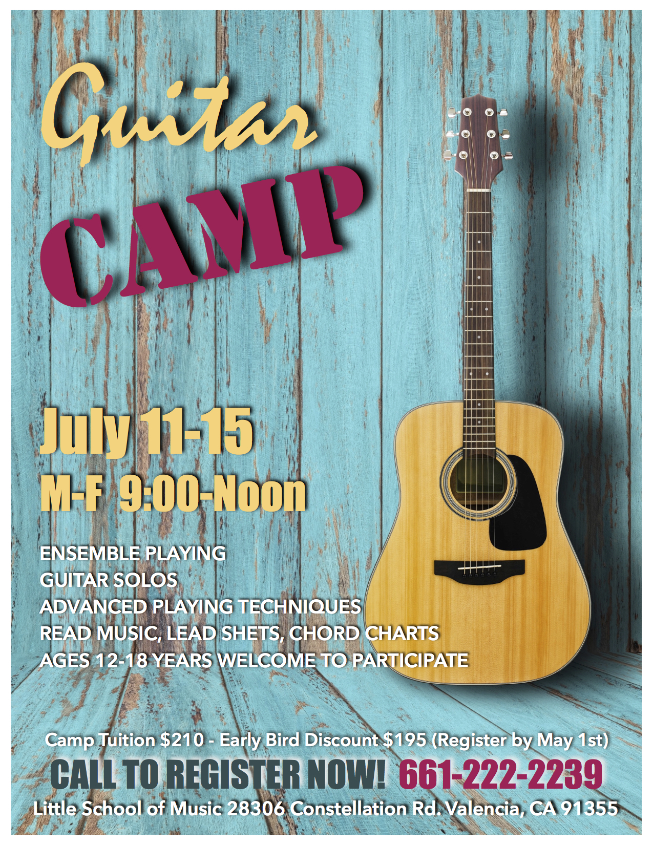 Want to get better at playing guitar? Participants will learn advanced playing techniques, guitar solos, how to read music, and follow lead sheets & chord charts, and develop band and ensemble playing. Guitar Players with at least 1 year playing experience are welcome to attend this Camp ages 12-18 yrs.